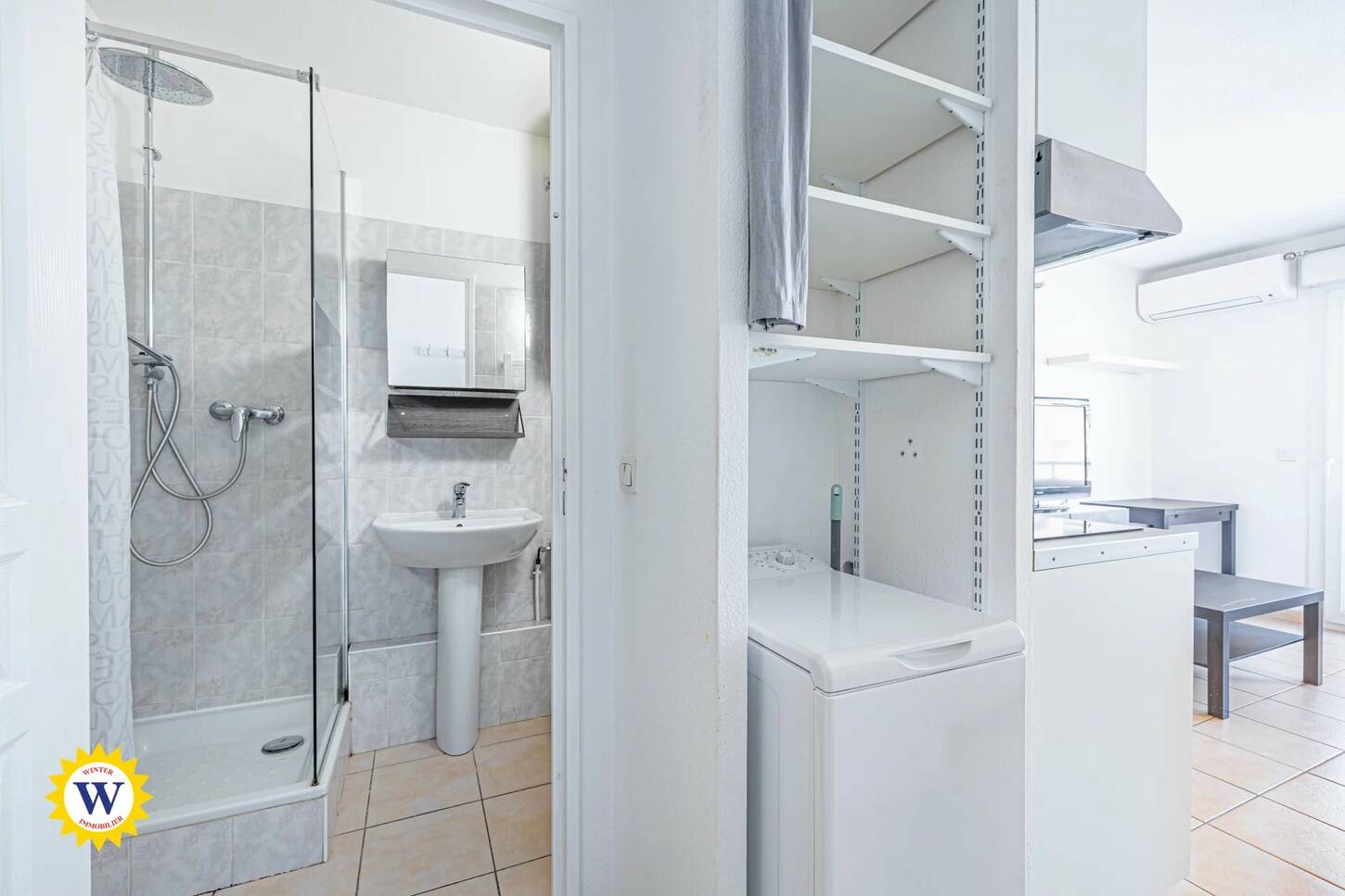 Cet appartement d'une surface de 17.58 m2 se compose d'une entée, un séjour avec cuisine ouverte, une salle de douches avec WC.