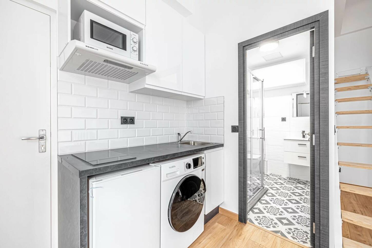 D’une superficie de 21,85 m², ce logement a été entièrement refait à neuf avec goût et offre un agencement fonctionnel. Il se compose d’une entrée, d’une pièce de vie faisant office de salle à manger/séjour, avec une cuisine ouverte entièrement équipée (réfrigérateur, plaque de cuisson, hotte, micro-ondes, machine à laver). Vous disposerez également d’une salle de douches avec WC, moderne et parfaitement entretenue.