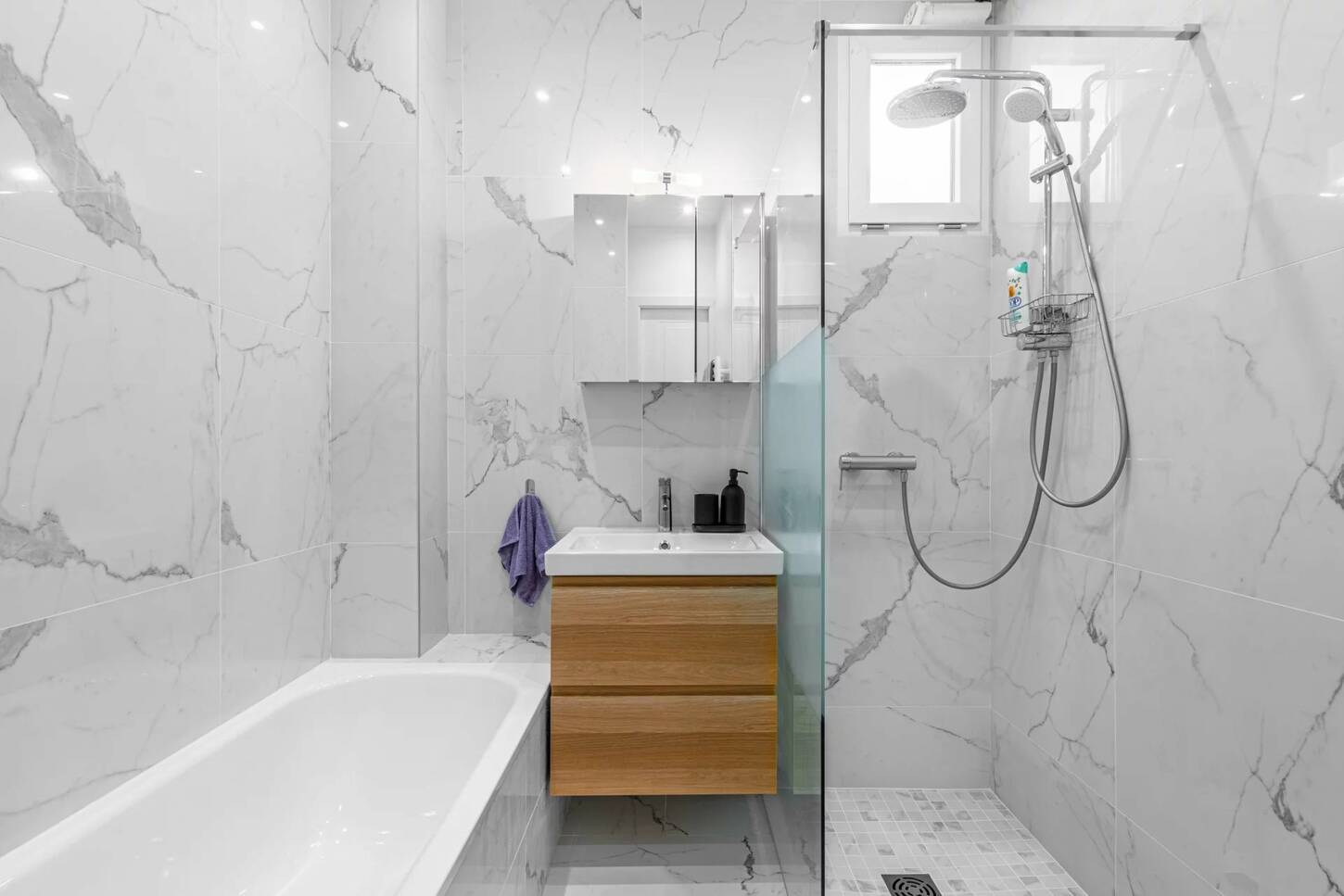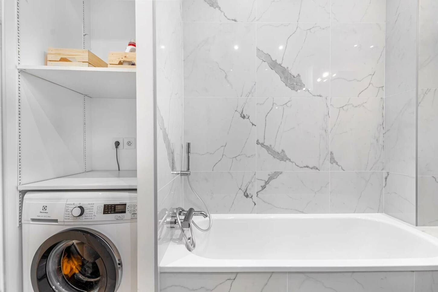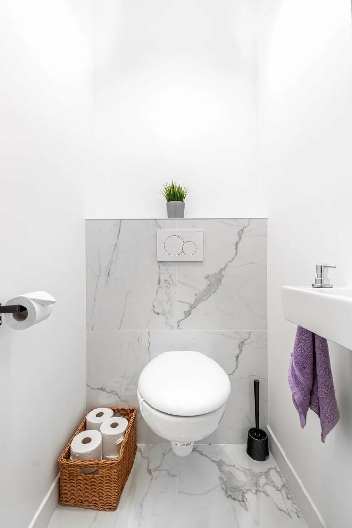 La partie nuit propose une chambre aménagée façon “coin nuit”, offrant confort et intimité. L’appartement dispose également d’une salle d’eau élégante comprenant une douche à l’italienne ainsi qu’une baignoire, et d’un WC indépendant.