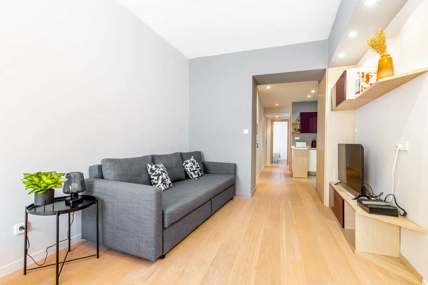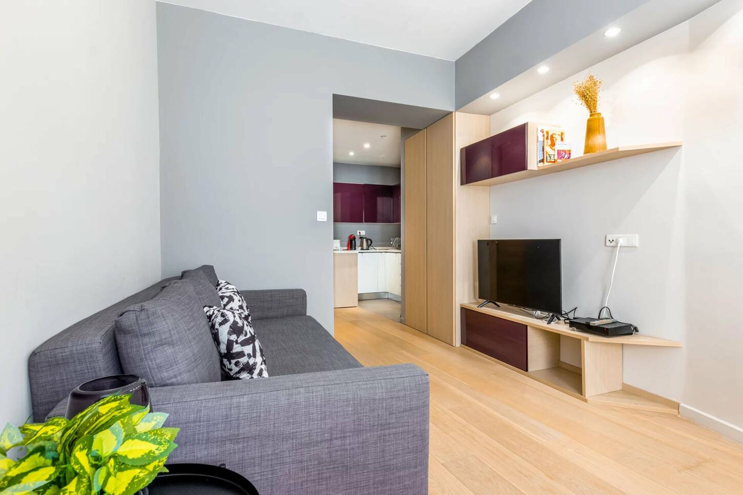 Il est composé d'un séjour, une cuisine ouverte aménagée et équipée, deux chambres sur cours au calme avec placard et une salle d'eau avec wc.