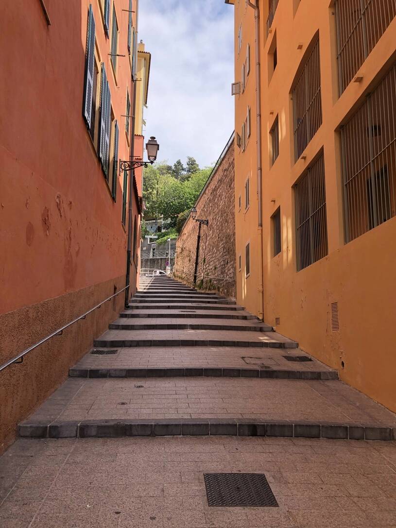 Idéalement situé entre la place Rossetti et la colline du château, dans une rue calme et accessible avec une voiture (ayant droit uniquement), au 2ème étage sans ascenseur d'un ancien immeuble niçois dont la façade est dans un état moyen et les parties communes intérieures en bon état, se trouve un beau petit deux pièces bien aménagé mais nécessitant des frais de rafraichissement.