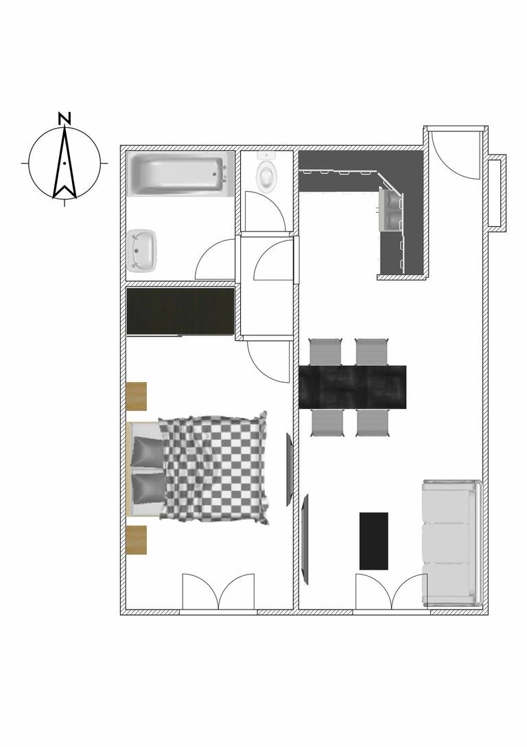D'une surface totale de 31,59m2, cet appartement se compose, pour la partie "jour" d'une entrée donnant sur un séjour avec cuisine ouverte, et pour la partie "nuit", d'un dégagement permettant d'accéder à une chambre, une salle de bains et une toilette indépendante.