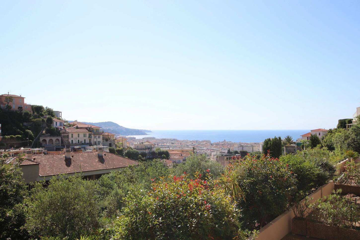 Situé sur les premières collines niçoise, au calme absolu, avec une vue dégagée sur la verdure, le centre-ville de Nice et la mer Méditerranée, au premier étage d'un immeuble recent de deux étages, ce deux pièces dispose d'une belle terrasse exposée Sud-Est et la possibilité d'acquérir un garage en sous-sol (25 000€ en sus).