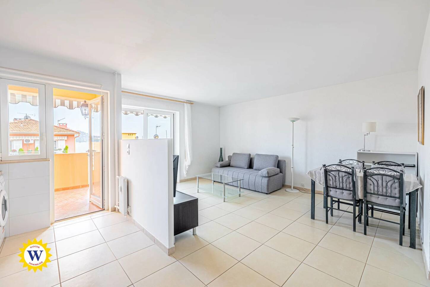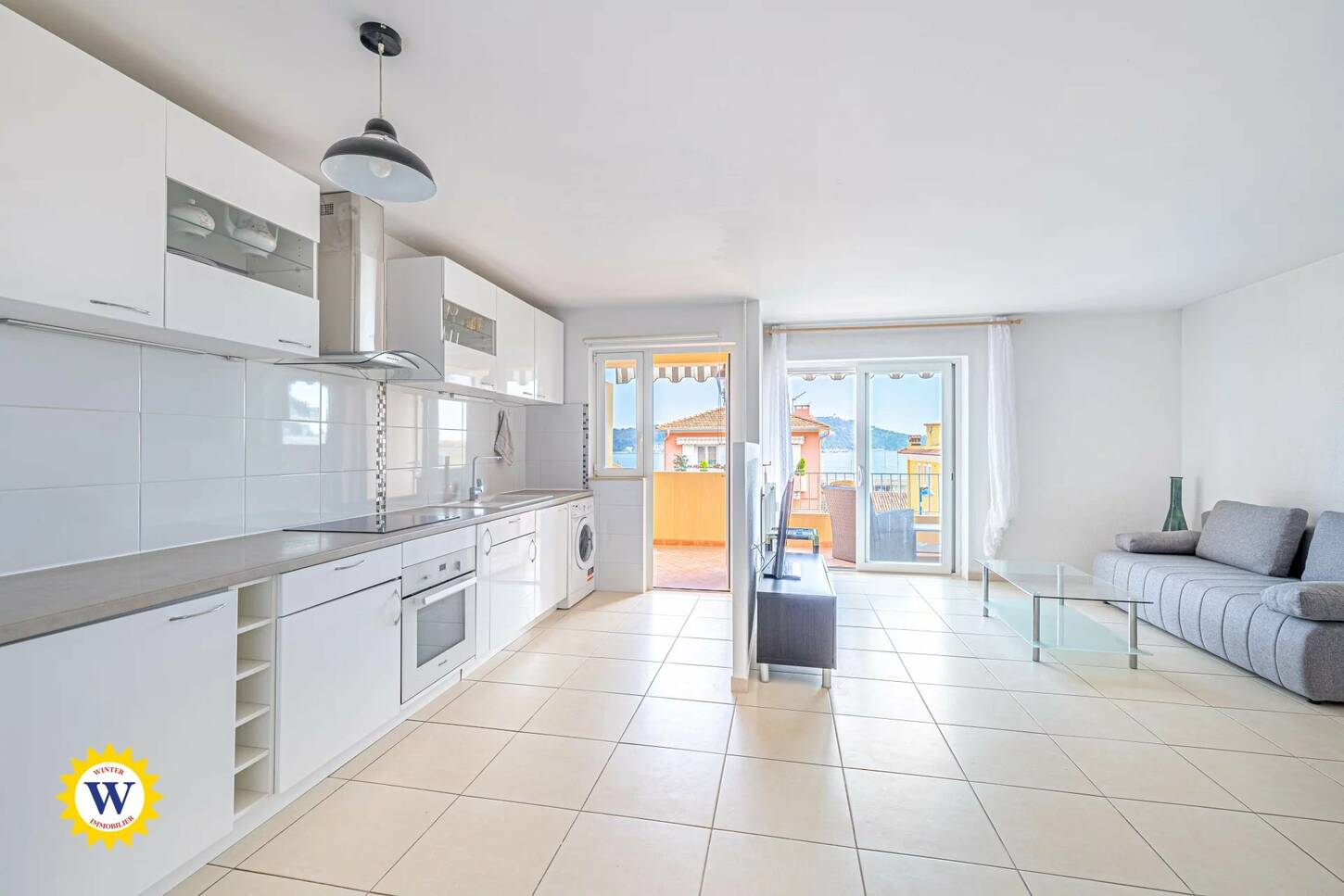 - Un grand séjour avec cuisine américaine, baigné de lumière, ouvrant sur une terrasse de 10 m² offrant une vue sur la mer.
