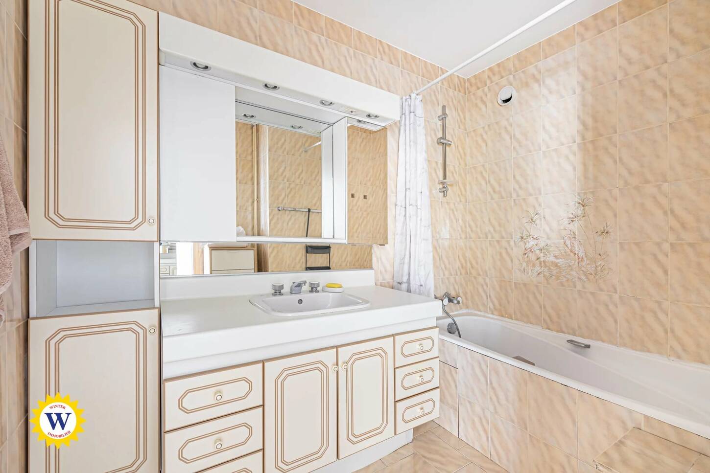 - Une salle de bain, un WC indépendant et un couloir doté de trois placards pour un rangement optimal.