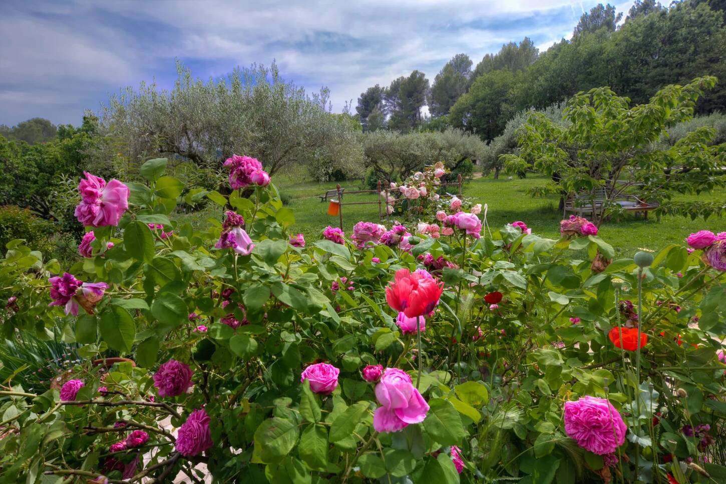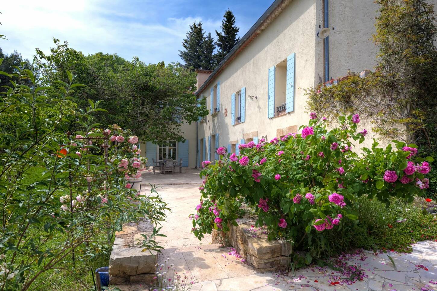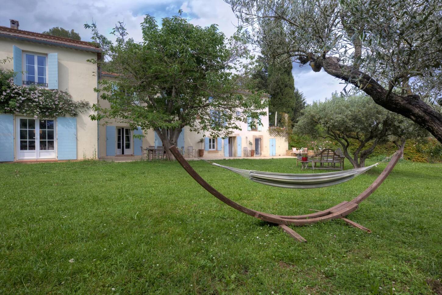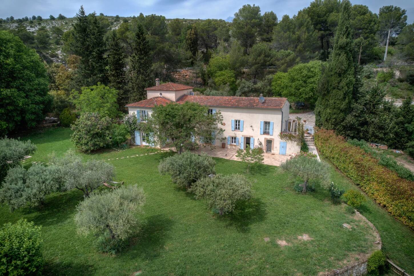 Le domaine s’ouvre sur une magnifique allée bordée d’oliviers (environ 70 arbres), d’arbres fruitiers et d’un vaste potager.