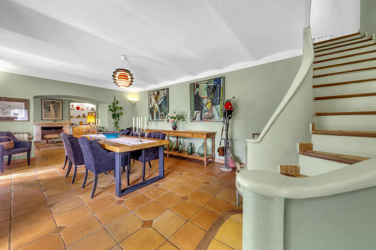 Le rez-de-chaussée accueille un grand séjour avec cheminée, une salle à manger conviviale, une cuisine entièrement équipée ainsi qu’une buanderie.