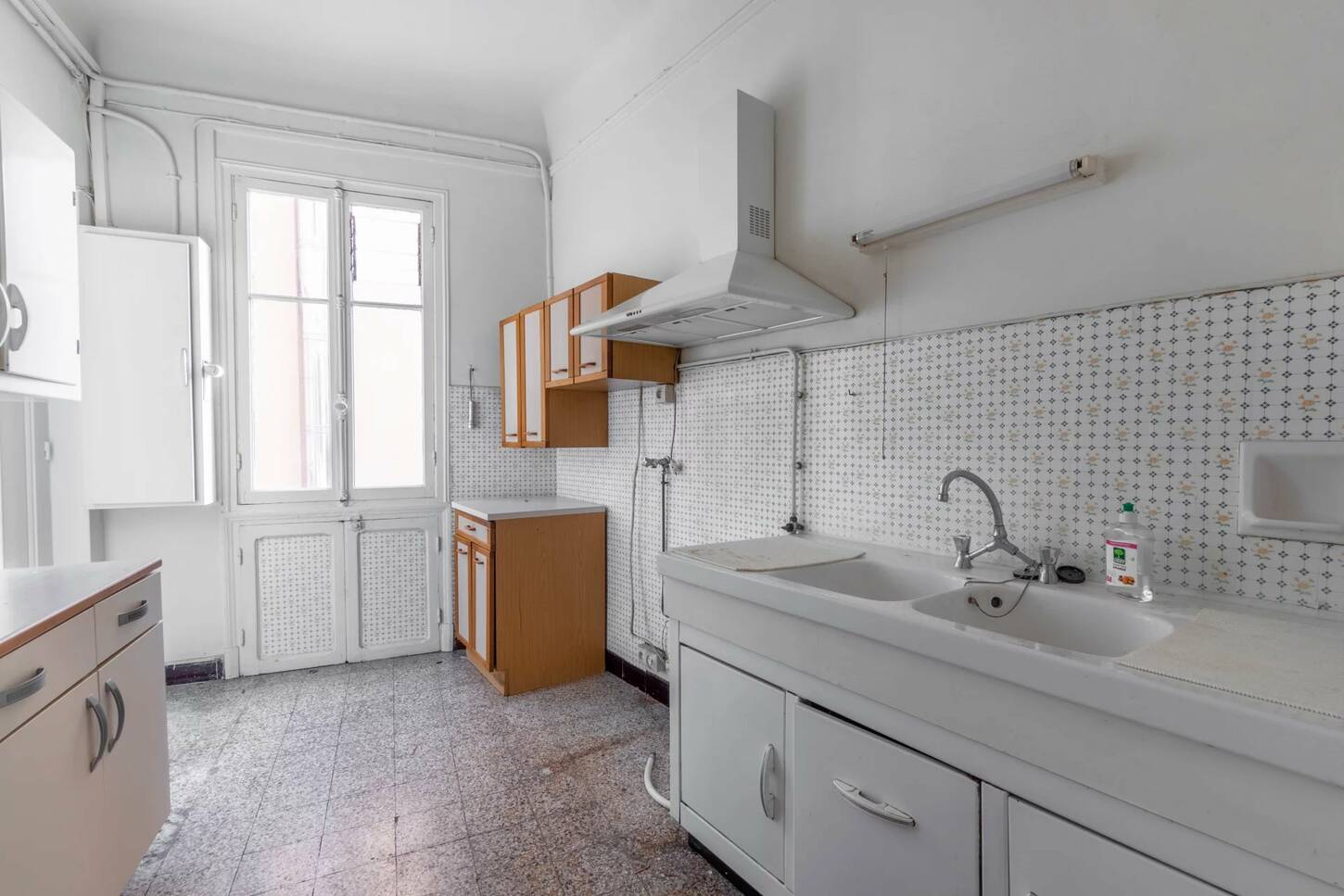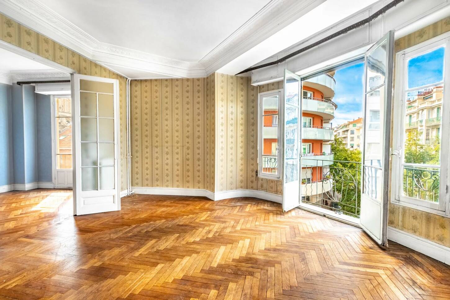 It has a solid parquet floor with high ceilings, which gives it a lot of character, but it still needs to be restored.