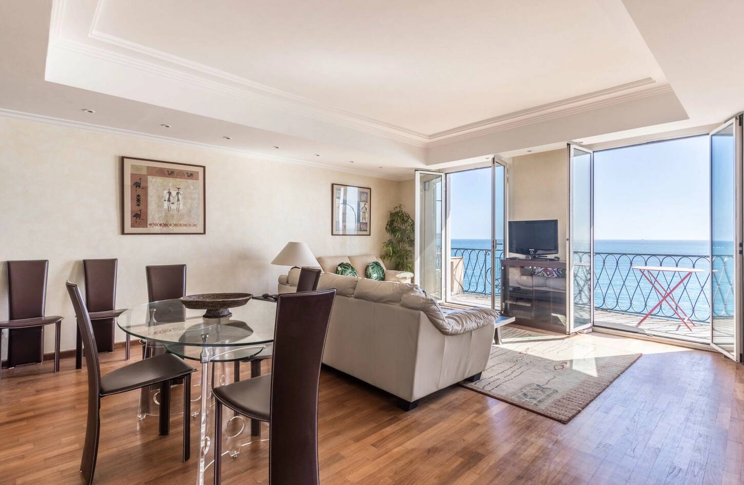 On the highly sought-after "Quai des Etats-Unis", in front of the sea, in the antechamber of the ever animated old town of Nice and the Cours Saleya, we offer you a superb two-room flat with three french windows on a dominant and 180° panoramic view and a deep balcony that can accommodate a table and two chairs. This apartment also has a large living room with an open and fully equipped kitchen, a bedroom with storage space, a bathroom, an independent toilet and many cupboards. Real crush for this enchanting view.