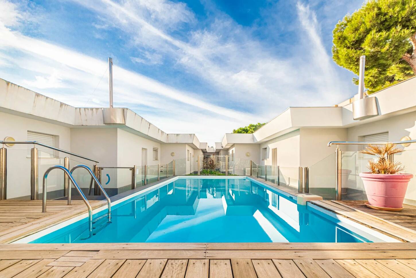The building, contemporary in style, underwent a complete renovation about ten years ago. It stands out for its understated elegance and offers a rare amenity in the heart of the city: a rooftop swimming pool, a true oasis of freshness suspended above the urban rhythm, accessible to residents.