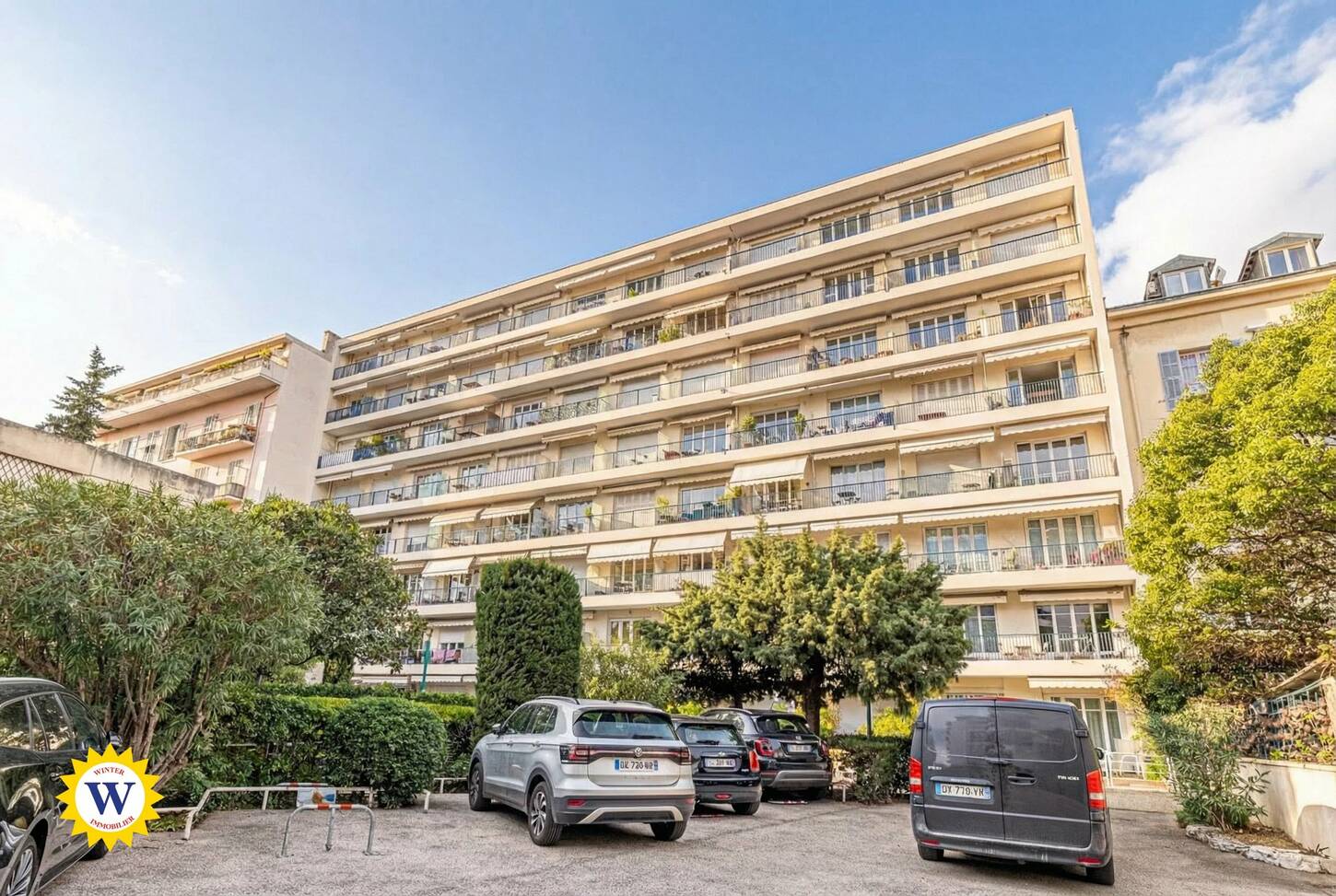 Situato in un edificio di grande prestigio con portineria e doppio ingresso (lato Promenade des Anglais e lato Rue de France), l’appartamento è esposto a sud ed è luminosissimo.