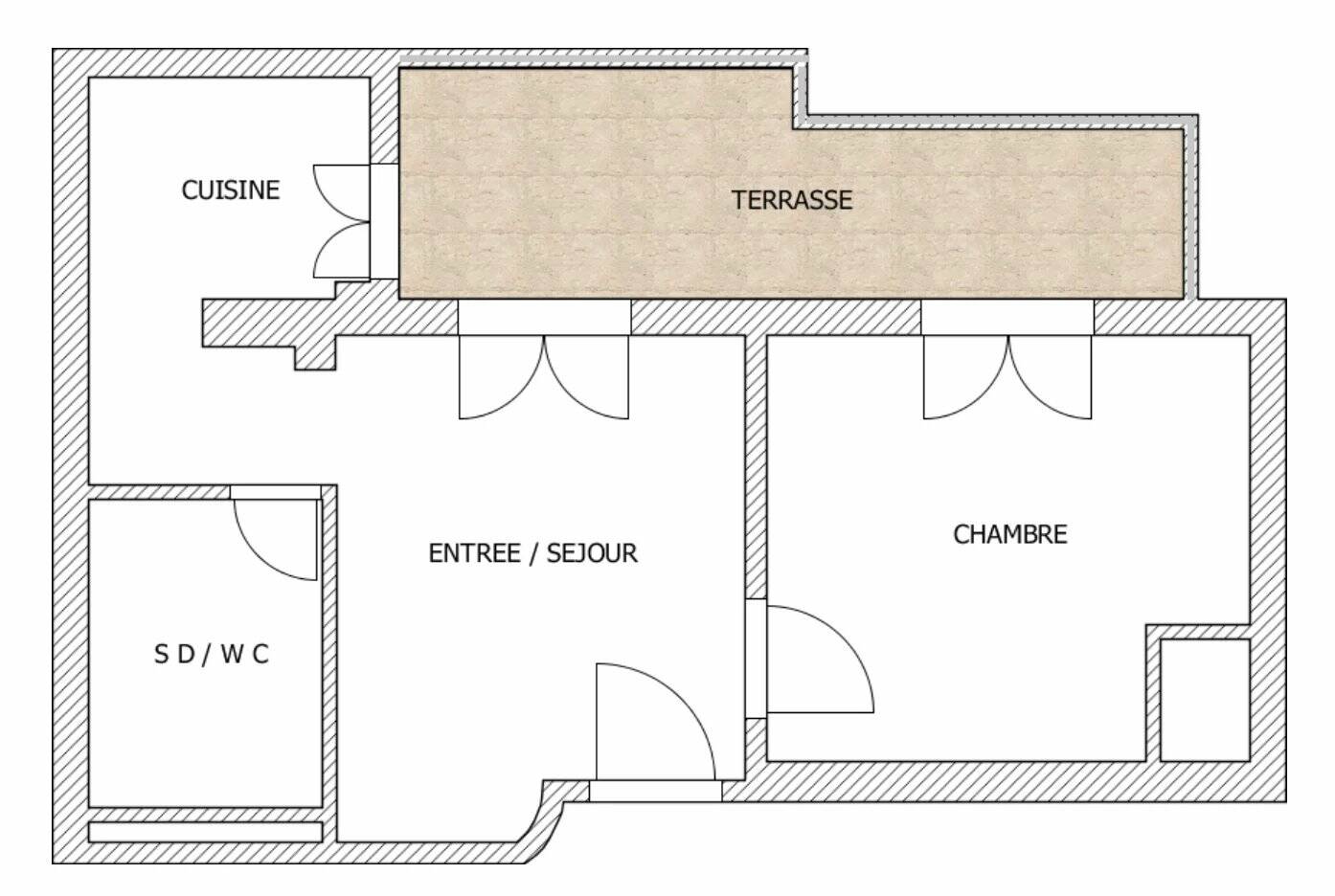 Con una superficie di 27m2 più 8m2 di terrazza, questo appartamento è composto da un soggiorno, una cucina separata, una camera da letto e un bagno con doccia e WC.