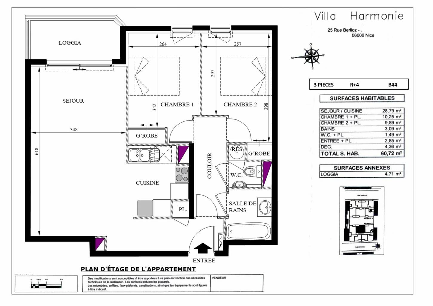 Мы предлагаем для продажи эксклюзивную З-комнатную квартиру площадью 60,78 м2 в безопасном жилом комплексе, построенном в 2009 году и расположенном по адресу 25 rue Berlioz в Ницце.